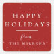 Élégante étoile blanche brillante sur autocollant personnalisé "Happy Holidays" rouge festif. Conçu pour correspondre à notre collection d'hiver de Spellbound.