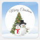 Si vous aimez les bonhommes de neige, vous aimerez cette jolie scène de neige hivernale merveilleuse avec deux bonhommes de neige et un sapin de Noël. Personnalisez cet autocollant avec vos propres mots ou achetez avec le "Joyeux voeux de Noël" Choisissez parmi une variété de polices et de couleurs pour votre texte. Stickers est un excellent moyen de sceller vos enveloppes ou d'ajouter à des sacs à cadeaux et des boîtes à biscuits.
