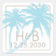 Aqua bleu et sable couleur palmier avec monogramme et date mariage personnalisable, ou changer le texte et les couleurs pour répondre à vos besoins pour votre destination de plage tropicale mariage ou soirée thème de plage. POUR MODIFIER LA CONCEPTION : Cliquez sur "customiser plus loin" pour modifier n'importe quoi, y compris la couleur de bordure du rectangle et la couleur de remplissage des palmiers.