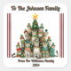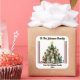 A charming square sticker adorned with a colorful Christmas tree and festive motifs adds a personal touch to beautifully wrapped gifts. Perfect for family celebrations, it showcases a heartfelt message, enhancing the seasonal spirit of giving.