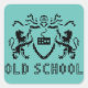 Design représentant un blason héraldique par l'art des pixels. L'écu est soutenu par des lions endémiques. Il y a aussi les mots : Old School. Un autocollant pour les nerds et les geeks