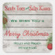 Cet autocollant de Noël amusant et tropical est accentué avec des feuilles de palmiers verts, des boules de Noël rouges, le dicton mignon, Sandy Toes Salty Kisses nous vous souhaitons un Joyeux Noël, et vos noms, ce qui le rend parfait pour la famille qui vit dans un endroit tropical, ou qui est parti pour Noël. Cet autocollant est idéal en tant que sceau d'enveloppe ou étiquette cadeau, et coordonne avec la Collection Joyeux Noël des panneaux de plage.