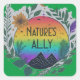 L'inspiration nature, présente le message "L'Allié de la Nature" dans un vif dégradé arc-en-ciel. Autour du texte sont des illustrations colorées de feuilles, de fleurs et de montagnes, créant un lien harmonieux entre le porteur et le monde naturel.
