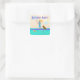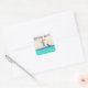Enveloppe RSVP scellés, ou autocollants, pour les invitations estivales à la fête qui ont un thème de paddle-board, ou sports nautiques. Une fille pagaie son tableau avec un chien brun à bord. L'eau tropicale turquoise contient une tortue de mer qui nage à côté de la planche violette. C'est mon propre dessin illustré. Les autocollants ronds et en forme de carré fonctionnent mieux.