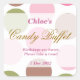 Sticker Buffet WhimsicalDotty Birthday Candy. Idéal pour les buffets de bonbons ou les tables de cupcake aux mariages, fêtes d'anniversaire, Baby showers, communion, confirmations et bien plus encore! Le design présente un arrière - plan fantaisiste aux points blancs et marron roses. Tout libellé peut être modifié sous le bouton "Personnaliser".
