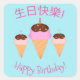 Joyeux anniversaire avec cet autocollant festif en mandarin chinois ! La décoration est composée de crème glacée violette avec des arrosées et une seule bougie rose. Le texte au-dessus du gâteau dit "生 快 樂", qui se traduit par "Joyeux anniversaire" en chinois.