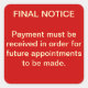Augmentez le suivi et le paiement des patients en utilisant cet AVIS FINAL rouge gras pour l'autocollant de paiement sur la facturation des patients et la correspondance de recouvrement. Feuille de 20.