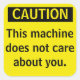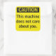 Petit Sticker d'avertissement de prudence parodique. Cette machine ne se soucie pas de vous. Ajoutez un peu d'humour à votre programme de l'environnement de santé et de sécurité.