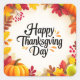Belle Sticker Bon thanksgiving Day avec un citrouille, une pomme, des baies rouges et des feuilles d'automne en orange, rouge, jaune et marron!