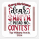 Un autocollant fantaisiste de Noël comporte l'expression Cher Père Noël, je ne plaide aucun concours en lettres audacieuses et festives. Les sucres de canne apportent une touche délicieuse. Parfait pour les décors de vacances ou les enveloppements cadeaux, il capture l'esprit des voeux de vacances ludiques.