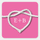 Une corde blanche attachée dans un coeur orne cet autocollant monogrammé sur un arrière - plan fuchsia, ce qui le rend parfait pour le mariage nautique ou balnéaire. Faites défiler vers le bas pour voir le reste de la collection de mariages, et si des articles supplémentaires sont nécessaires, contactez-nous à prettyfancyinvites@gmail.com avec votre demande