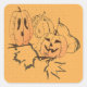 Sticker Halloween Vintage dessiné à la main avec de mignons citrouilles et feuilles sur un arrière - plan orange dotty.