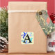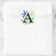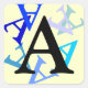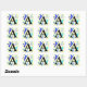 Lettres brouillées. Personnalisez l'autocollant avec la lettre de votre choix. Il sera répliqué avec une grande lettre au centre qui est noire, et sept petites lettres éparpillées dans différentes nuances de bleu. Arrière - plan jaune pâle.