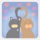 Un chat gris et un chat brun se chamboulent comme l'amour et les coeurs remplissent l'air sur ce mignon autocollant!
