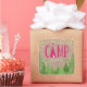 Un autocollant rustique et chic pour une soirée à thème "Glamping", avec une tente dans une forêt d'arbres sous des étoiles d'or de fausse feuille.