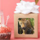autocollant carré avec l'image d'un beau jaguar adolescent. Le jaguar est une espèce presque menacée et son nombre diminue. Voir confettis assortis, sac de faveur, étiquette de faveur, étiquette et papier d'emballage. Voir l'ensemble de la collection Safari Sticker dans les INVITATIONS | Section Stickers & Étiquettes.
