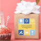 Cet autocollant utilise les icônes d'Hanoukka pour transmettre des voeux chaleureux. Les couleurs vives bleu et or entourent les icônes d'un dreidel, menorah, kiddush cup, entre autres pour encadrer votre message. Idéal pour les enveloppes ou pour coller sur des forfaits de vacances ou des cadeaux. Disponible en couleurs alternatives avec produits correspondants. com com com com