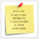Un autocollant amusant avec une note post-it avec le message : "Note à soi : J'ai survécu à l'accouchement. Je peux gérer un peu d'exercice !" Un bon rappel pour motiver les mamans à s'en tenir à leur résolution du Nouvel An pour exercer plus. Que maman ait décidé d'aller à la salle de gym, courir, Pilates ou prendre un sport, cet autocollant lui rappellera de le mettre en "perspective" ;) Un autocollant fabuleux pour la mère que vous aimez qui a fait une résolution pour exercer plus en 2014!