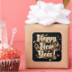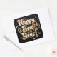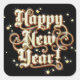 autocollant carré avec une image du sentiment de vacances "Bonne année !" en lettres brillantes et brillantes au milieu d'étoiles dorées sur le noir. Voir autocollant vinyle taillé sur mesure, carte de voeux 5" x 7", invitation 5,25" x 5,25", étiquette, confettis et papier d'emballage. Voir la collection entière de Stickers du Nouvel An sous la catégorie CARDS & STICKERS dans la section VACANCES.