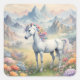 Un autocollant montrant une image rêveuse d'une licorne blanche avec une crinière arc-en-ciel debout dans un champ de fleurs. Dans l'arrière - plan se trouvent des montagnes majestueuses. Le cadeau parfait pour donner à ceux qui aiment les licornes magiques et mystiques. Contient du contenu génératif.