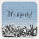 Un autocollant carré pour accompagner notre invitation "Tea Party with Text" d'une image vintage de la fête du thé de Mad Hatter avec Alice, le lièvre de mars et Dormouse, et un autre de la Chapelle de Mad, au bas d'une page du livre "Through the Look Glass" en bleu. Texte personnalisable Voir invitation correspondante, enveloppe, confetti, sac de faveur, étiquette de faveur carré, étiquette, aimant carré et papier d'emballage. Voir l'ensemble de la collection Wonderland Sticker dans les INVITATIONS | Section Stickers & Étiquettes.