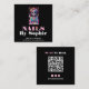 Un artiste ongle éditable modèle de carte de visite thématique Tarot, avec code QR, poignées de médias sociaux et typographie vintage en rose et blanc sur un arrière - plan noir. Scannable QR Code dirige instantanément les clients vers votre page de réservation.