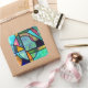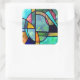 sticker carré avec une image de vitrail bleu, rose, jaune et vert dans un motif abstrait. Voir le étiquette correspondant et le papier d'emballage. Consultez la collection complète de This & That Sticker dans la section CARDS, POSTCARDS & STICKERS.