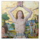 Ce tableau était le panneau central d'un retable de la fin du 15ème siècle de l'Augustiner-Eremise-Konvent Sankt Antonius à Cologne, en Allemagne. Les trois panneaux sont actuellement exposés ensemble dans le WRM. A sa gauche, on voit Saint-Sébastien guérir la femme d'un compagnon militaire et encourager ses compatriotes chrétiens dont certains sont emprisonnés ; à sa droite, on voit Saint-Sébastien condamné à mort et battu mortellement avec des bâtons à son deuxième martyre. + Crédit image (M 013) : Détail du martyre de Saint-Sébastien (Martyrium des hl. Sebastian), par le Maître de la Sainte Parenté le Jeune (Meister der Heiligen Sippe der Jüngere), c. 1493-1494, huile et or sur chêne, 257,5 cm de large x 186 cm de haut (101,3 po x 73,2 po), Wallraf-Richartz-Museum (Acc. No. WRM 0160), Cologne, Allemagne. Source : Wikimedia Commons {{PD-Art|PD-old-70}}. Le fichier image a été identifié comme étant exempt de restrictions connues en vertu de la loi sur le droit d'auteur, y compris tous les droits connexes et voisins. + Fête : 20 janvier