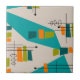 Moderne du milieu du siècle abstrait dans les formes géométriques, les couleurs turquoise, orange et citron vert.