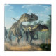 Trois allosauruses donnent un coup de pied la poussière pendant qu'ils chassent le long d'une voie rocheuse créée par le passage de grands dinosaures. Les plantes vert-foncé rayent les côtés de la traînée" "tandis qu'une forêt de conifère domine l'arrière - plan. Dérive de nuages aérienne par les cieux préhistoriques bleus. L'allosaurus était un dinosaure de theropod de la période de Jurrassic. Quelques paléontologues théorisent que les Allosaurs étaient des chasseurs de paquet" "ainsi je cependant que ce pourrait être amusement pour dépeindre un trio des créatures sur la chasse pour cette dernière addition à ma série de paleoart.