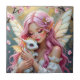 A pretty pink and gold anime elven fairy holding her cute white baby dragon ceramic tile.