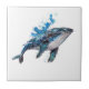 aquarelle traditionnelle d'une grande baleine à bosse bleue nageant le long d'un carrelage en céramique