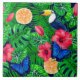 Motif tropical en aquarelles peintes à la main - feuilles, toucans, hibiscus et papillon.