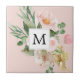 Carreau Aquarelle moderne Fleurs roses Monogrammes