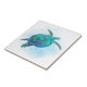 Ce carrelage en céramique océanique présente une mignonne tortue bleu marine nageant sur un jet d'aquarelle de vague océanique.