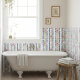 Aquarelle blanche fleurie et rayures avec un motif de fleurs d'aquarelle de corail et rayures bleues audacieuses, entrecoupées d'un vert délicat feuillage et des accents pointillés. L'atmosphère unique et peinte à la main apporte une touche de charme artistique aux cuisines, aux salles de bains ou à tout espace nécessitant un ascenseur gai. Ajoutez une touche artistique fantaisiste à votre maison !