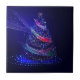 Arbre de Noël SlipperyJoe numérique rubans rouges verts bleus translucides brillant d'énergie festive cercles de lumières bleues concentriques vers l'extérieur présence éthérée presque holographique lumières et étincelles radieuses fond bleu profond cadeaux de fierté gay atmosphère magique émet des faisceaux des traînées de lumière mouvement et flux LGBTQIA