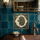 This stunning ceramic tile features a beautifully rendered anatomical illustration of a kidney, presented in a vibrant blue and green palette with striking gold accents. The intricate Art Deco border, adorned with floral motifs and sunburst patterns, adds a touch of vintage elegance and sophistication to the design. This unique piece is perfect for anyone with an interest in anatomy, medicine, or simply appreciating artistic representations of the human body. It would make a distinctive addition to any home decor, adding a pop of color and a conversation starter to kitchens, bathrooms, or living spaces. Embrace the fusion of science and art with this eye-catching tile.