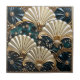 Belle tuile art déco avec ventilateur motif en bleu, noir, or et ivoire. Il y a d'élégants feuilles de figuiers d'or et de petites pierres étincelantes. #contenu génératif