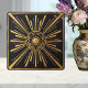 Illuminate your space with the captivating allure of this Art Deco sunburst. The design showcases a central, embossed-like golden sun encircled by sharp, angular geometric shapes and emanating rays, all set against a textured black background. This striking contrast of opulent gold and dark, moody black captures the essence of the Art Deco era, exuding sophistication and vintage appeal. It's a bold statement piece that adds a touch of classic elegance and artistic flair to any wall, embodying a timeless aesthetic for the modern home.