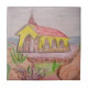 Un croquis de crayon d'aquarelle et une peinture de la chapelle de vue d'alto dans Aruba avec la mer des Caraïbes et les divers cactus, les roches et les arbustes épineux.