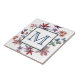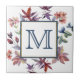 C'est un joli carrelage, avec des feuilles d'automne colorées et des images florales qui font une bordure pour vous monogramme au centre en bleu. Une belle combinaison de couleurs chaudes et cool pour l'automne, mais belle en toute saison !