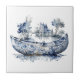 Carreau Bateau de style Delft bleu et blanc avec scène de