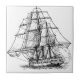 Naviguez en haute mer matey! Vous pouvez facilement customiser cette impression en choisissant votre propre couleur d'arrière - plan. Que vous souhaitiez utiliser ce carrelage comme petit dessous de verre ou trivet pour boire un verre ou une assiette... ou que vous vouliez aller grand avec un fond de cuisine, ou carrelage de salle de bain, c'est à vous de décider ! Faites un mur, une bordure ou juste une tuile d'accent. Laissez voler vos rêves de design d'intérieur ! Simple Black Blanc Nautique Bateau Bateau Pirate Bateau Carrelage en céramique.