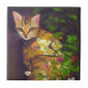 Carrelage en céramique sur l'illustration d'un beau chat abyssin dans un jardin du soir, avec fleurs de nuit