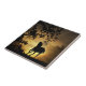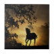 Un grand cadeau pour les amateurs de chevaux, cette tuile a un cheval en silhouette courant au coucher du soleil encadré de chênes.