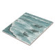Un carrelage en céramique représentant quatre bécasseaux le long d'un rivage aux vagues douces lissant le sable illustré d'encre et d'aquarelle.