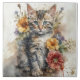 Carreau Belle Tabby Gris Chat Entouré de Fleurs