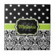 Elégant motif damassé noir et blanc avec motif pois. Ce cadeau à la mode féminin comprend une plaque d'identification noire, verte et blanche pour votre nom personnalisable et votre monogramme. Cela ferait un cadeau d'anniversaire cool pour les filles ou un cadeau de Noël pour elle. Autres options de couleur