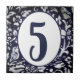 Un design bleu et blanc complexe et classique borde l'ovale blanc avec n'importe quel numéro de maison. Oiseaux, baies et fleurs sont à la frontière, et les bords du carrelage sont légèrement foncés pour un effet dimensionnel. Utilisez le menu Modification du modèle pour modifier les nombres.